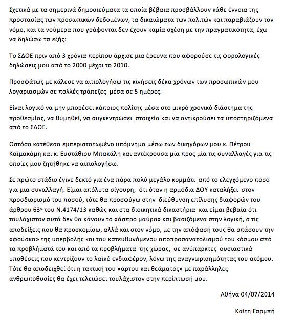 Ολόκληρη η ανάρτηση της κ. Γαρμπή: